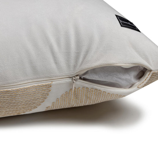 Transform your space with the Hom&us Concentric Circles Cushion Covers, featuring a luxurious Holland velvet front and back, adorned with gold bead embroidery. Durable and soft, these cushion covers add a touch of elegance and comfort to any room. The hidden zipper ensures easy use, while the rich design and high-quality fabric make them a perfect decor piece or gift.